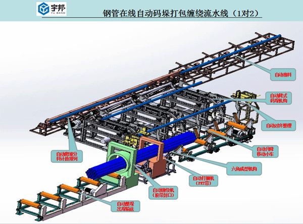 鋼管自動臂式碼垛打包線(